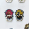 Crafted from high-quality acrylic, these phone stands are designed to securely adhere to the back of your phone or phone case. Each stand features a golden metal ring that effortlessly rotates 360 degrees, ensuring a sturdy and adjustable grip at any desired angle.